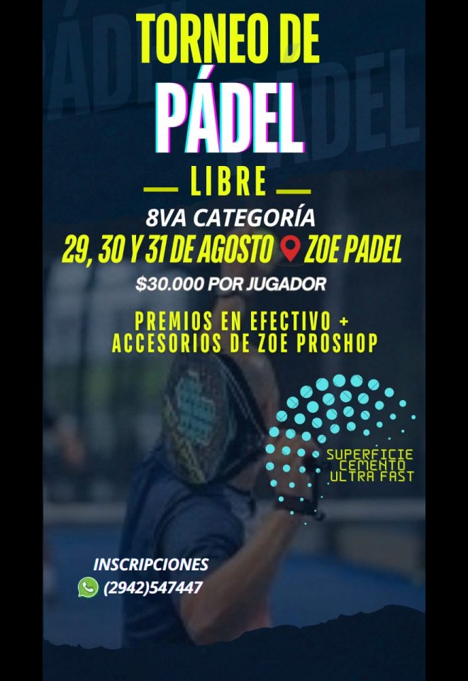 »» Evento: TORNEO de PADEL - C8 - ZAPALA »» Localidad: Zapala »» Fechas: 28/08/2025 al 31/08/2025