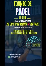 »» Evento: TORNEO de PADEL - C8 - ZAPALA »» Localidad: Zapala »» Fechas: 28/08/2025 al 31/08/2025
