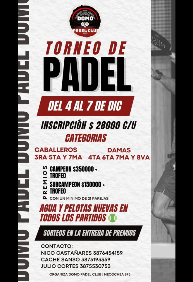 »» Evento: TORNEO DOMO PADEL CLUB »» Localidad: Salta »» Fechas: 04/12/2025 al 07/12/2025